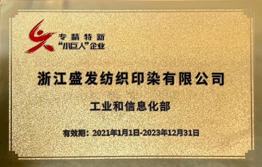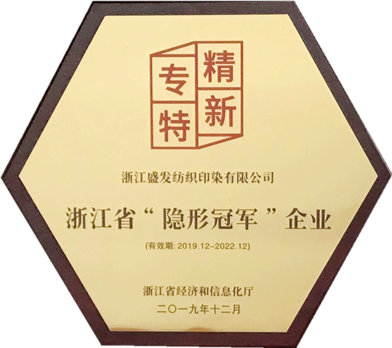 公司自06年起,先后通过了IS09001国际质量管理体系认证、IS014001国际环境管理体系认证GB/T28001职业健康安全管理体系认证、GB/T27922五星级售后服务认证、GJB9001C武器装备质量体系认证、三级保密资格认证、装备承制单位资格认证、武器装备科研生产备案,通过省清洁生产审核,荣获国家高新技术企业、国家专精特新小巨人企业、工信部印染行业规范公告企业、水效领跑企业、工业产品绿色设计示范企业、国家绿色工厂、国家守合同重信用企业、国家知识产权优势企业、国家级博士后科研工作站、国家级模范院士专家工作站、中国化纤长丝面料名优精品金奖、中国长丝织造行业经济效益排名前50强、中国印染行业30强、中国纺织行业人才建设工作先进单位、浙江省隐形冠军企业、浙江省军民融合示范企业、浙江省绿色工厂、浙江省节水型标杆企业、浙江省节水型企业、浙江省信用管理示范企业、浙江省科技型中小企业、浙江省安全生产标准化企业、浙江省纳税信用A级企业、浙江省专利示范企业、浙江名牌产品、浙江出口名牌、纺织之光科技进步二等奖、省科技进步三等奖、市政府质量奖,拥有省级博士后工作站、省级企业研究院、省级企业技术中心、省级中小企业技术中心、省级工业设计中心、省级高新技术研发中心、省级院士专家工作站,军用多功能纺织品面料浙江省工程实验室,盛彩商标获浙江省著名商标称号,盛发获浙江省知名商号等荣誉称号。系中国长丝织造协会常务副会长单位、中国多功能帐篷面料精品生产基地。